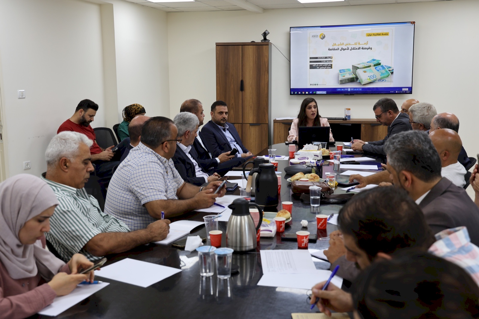 رام الله- عقد الائتلاف من أجل النزاهة والمساءلة (أمان)، جلسة نقاش تفاكرية حول أزمة تكدس الشيكل في البنوك الفلسطينية، والقرصنة الإسرائيلية المستمرة لأموال المقاصة، بمشاركة مجموعة من الخبراء وممثلين عن وزارة المالية وسلطة النقد الفلسطينية، ومؤسسات اقتصادية ومصرفية ذات صلة. تهدف الجلسة إلى تشخيص الواقع المالي المتأزم، وبلورة توصيات قابلة للتطبيق لمواجهة الانهيار الاقتصادي المحتمل، ووقف النزيف المالي، والدفع نحو حلول جذرية بدلًا من الاكتفاء بالحلول المؤقتة.