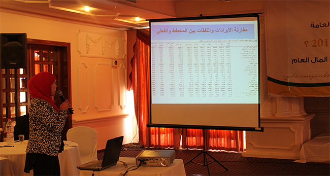 وقد رحب ممثلوا امان بالحضور والمشاركين وتم عرض مخرجات دراسة تحليلية مالية للموازنة العامة للنصف الاول من العام الجاري ، هذه الدراسة الرصدية التحليلية التي انتجها فريق شفافية الموزانة من خلال الباحث مؤيد عفانة، وصلت الى مجموعة من الاستنتاجات والتساؤلات التي لم تجد من يبرر او يجيب او يوضحها للحضور ولوسائل الاعلام . ومن تلك الخلاصات التي توصلت لها الدراسة ،