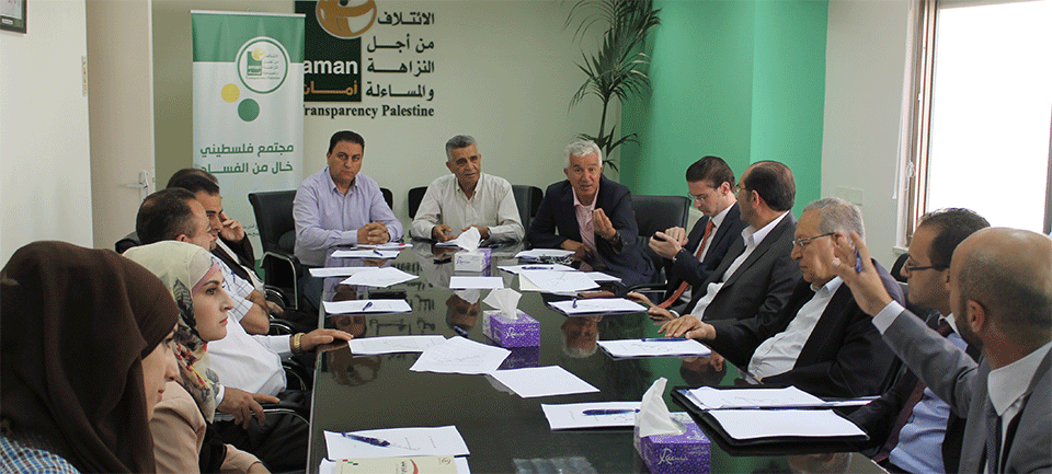 بحضور ممثلين عن مؤسسات القطاع العام والخاص والمجتمع المدني، حيث شارك ممثلين عن كل من: مجلس القضاء الأعلى، المجلس التشريعي، مجلس تنظيم قطاع الكهرباء، صندوق الاستثمار الفلسطيني، شركة النقل الوطنية للكهرباء، وزارة المالية، وزارة العدل، ديوان الرقابة المالية والادارية، هيئة سوق رأس المال، الاتحاد العام للصناعات الفلسطينية، غرفة تجارة وصناعة رام الله والبيرة، معهد الحقوق في جامعة بير زيت، جمعية الحق، جمعية شمس.
