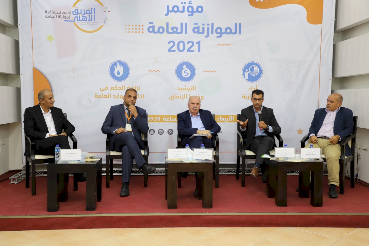 Ramallah – 13 October 2021, The Civil Society Team for Enhancing Budget Transparency (CSTEBT) held its annual conference to discuss the public budget and review the public budget performance in the first half of 2021. Discussants shed light on areas of budget rationalization and control under the financial crisis endured by the Palestinian National Authority (PNA), with a special focus on governance integrity in the management of public and natural resources and wealth. The conference closed with objective recommendations to rationalize and control expenditure within the revenues available without impacting the provision and quality of services, in a manner that decreases budget deficit and accumulation of government debt and arrears.