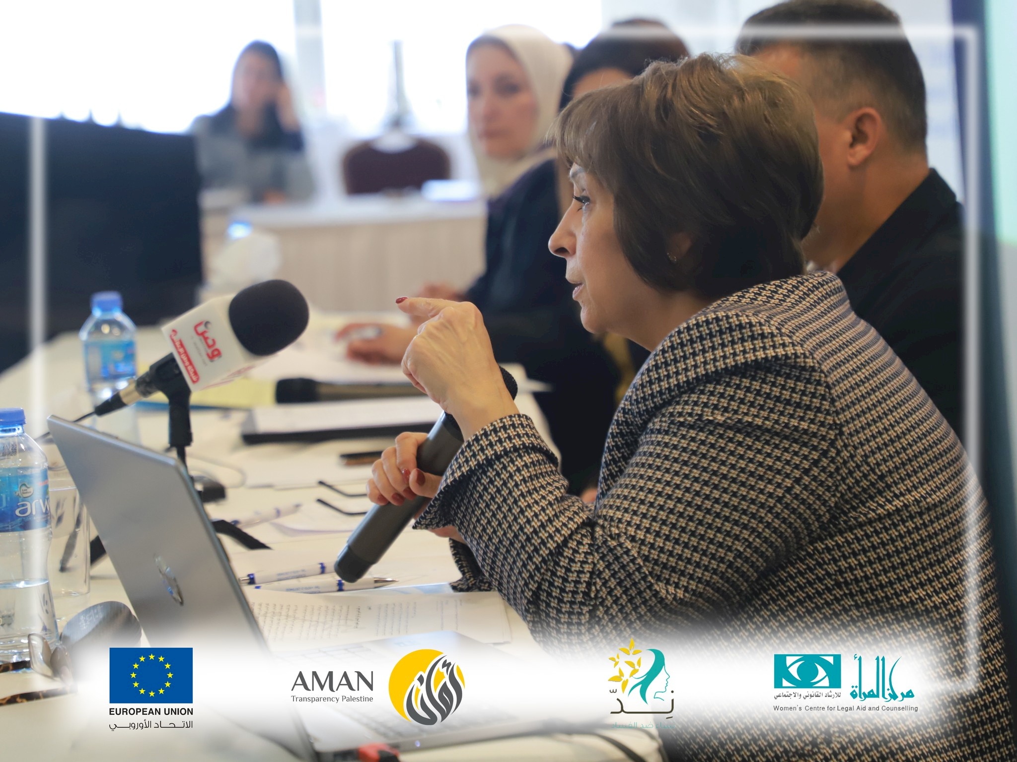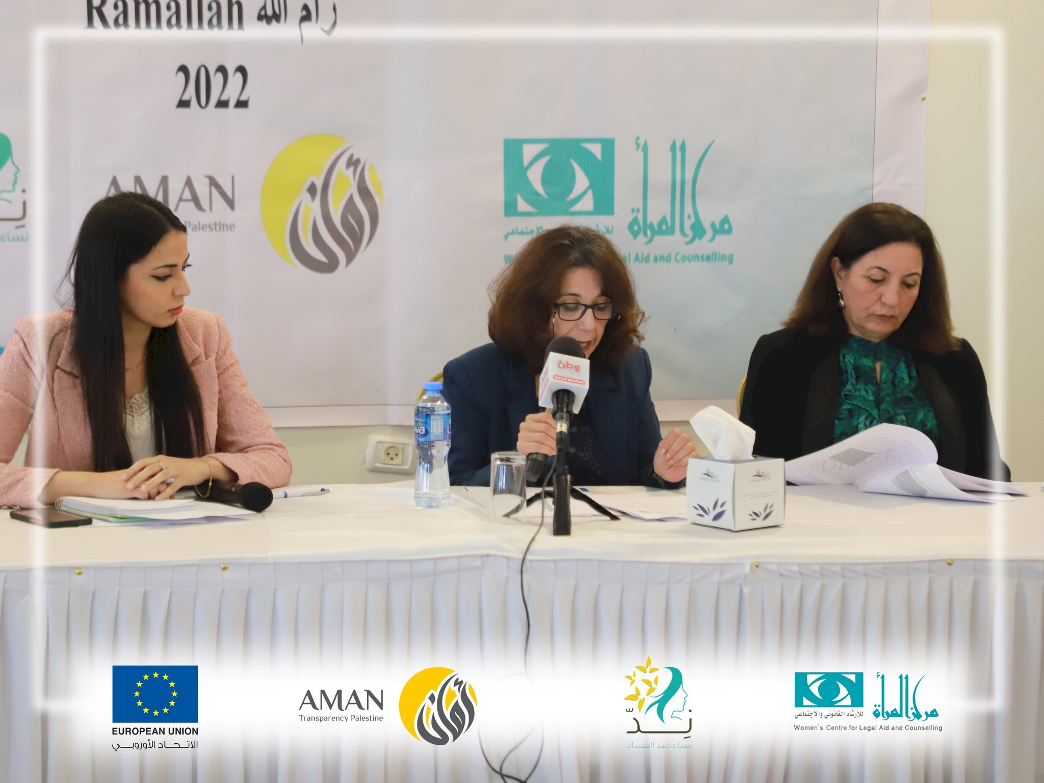 Mr. Issam Haj Hussein, Executive Director of AMAN, stated that, for the second year and in partnership with the WCLAC, AMAN has implemented the Women against Corruption project, which centred on raising public awareness about the importance of creating a system of integrity values and fight against corruption within Palestinian community institutions. Premised on citizens, a culture will be bolstered, rejecting all forms of corruption. To this end, coalitions, networks, and partnerships will be established with different sectors. An inclusive national dialogue will be launched to address the impact of gender-based corruption on women. Fight against corruption will be incorporated into the strategies of action of civil society groups and grassroots organisations working on women’s rights.