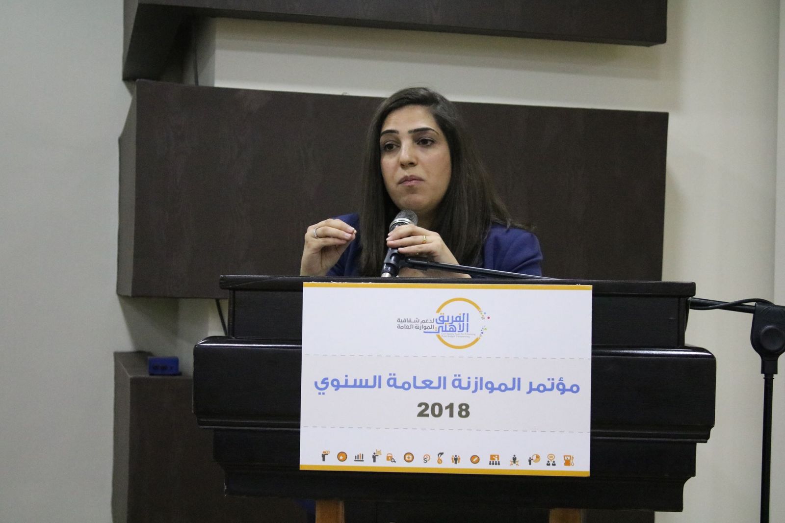 The Social Audit coordinator at AMAN, Lamis Farraj, presented the semi-annual report on 2018 Budget performance, with an analysis of the government’s compliance with the adopted fiscal policies. The report revealed that the Budget process lacked transparency and did not engage the civil society and citizens in identifying priorities. It also pointed out that the information was not disclosed in due time, and an evident gap existed between declared policies and practice. Another issue was the broad fiscal policies that have neither clear timeframes nor tools for implementing them, which led to poor achievement. Farraj indicated that the government did not comply with the regular and binding timeframe provided in the Budget Law for preparation, adoption and approval, publishing and monitoring. The published data on direct or transferred revenues and expenditures did not show the collections or expenditures of Gaza Strip, thus giving PNA and Hamas government the opportunity to use those figures without showing the results of the published revenues and expenditures. The report also pointed out structural deficiencies in budget distribution, whereby the internal and public security continue to receive the largest share. The report indicated that despite the reduction in the wage bill actually resulted from referring 24,000 employees to early retirement during the past and the current years. Furthermore, the accumulated debt problem persisted, whereby the public debt amounted to 8.6 billion Israeli Shekels (ILS), the Pension Fund debt amounted to 7 billion ILS and the arrears to 1.2 billion ILS, amid a chronic deficit and failure to seriously reduce net lending. This reveals no progress in the health insurance and electricity issues. This requires adopting a transparent fiscal policy for repaying the Pension Fund debt, paying the private sector arrears regularly, expanding the tax base and improving collection, ending tax avoidance and evasion and taking stricter measures against smuggling tobacco. Moreover, the report said that the government must adjust to the new situation, develop an austerity plan to face the current financial crisis and deficit without resorting to random methods that are detrimental to the developmental and social sectors and public services.